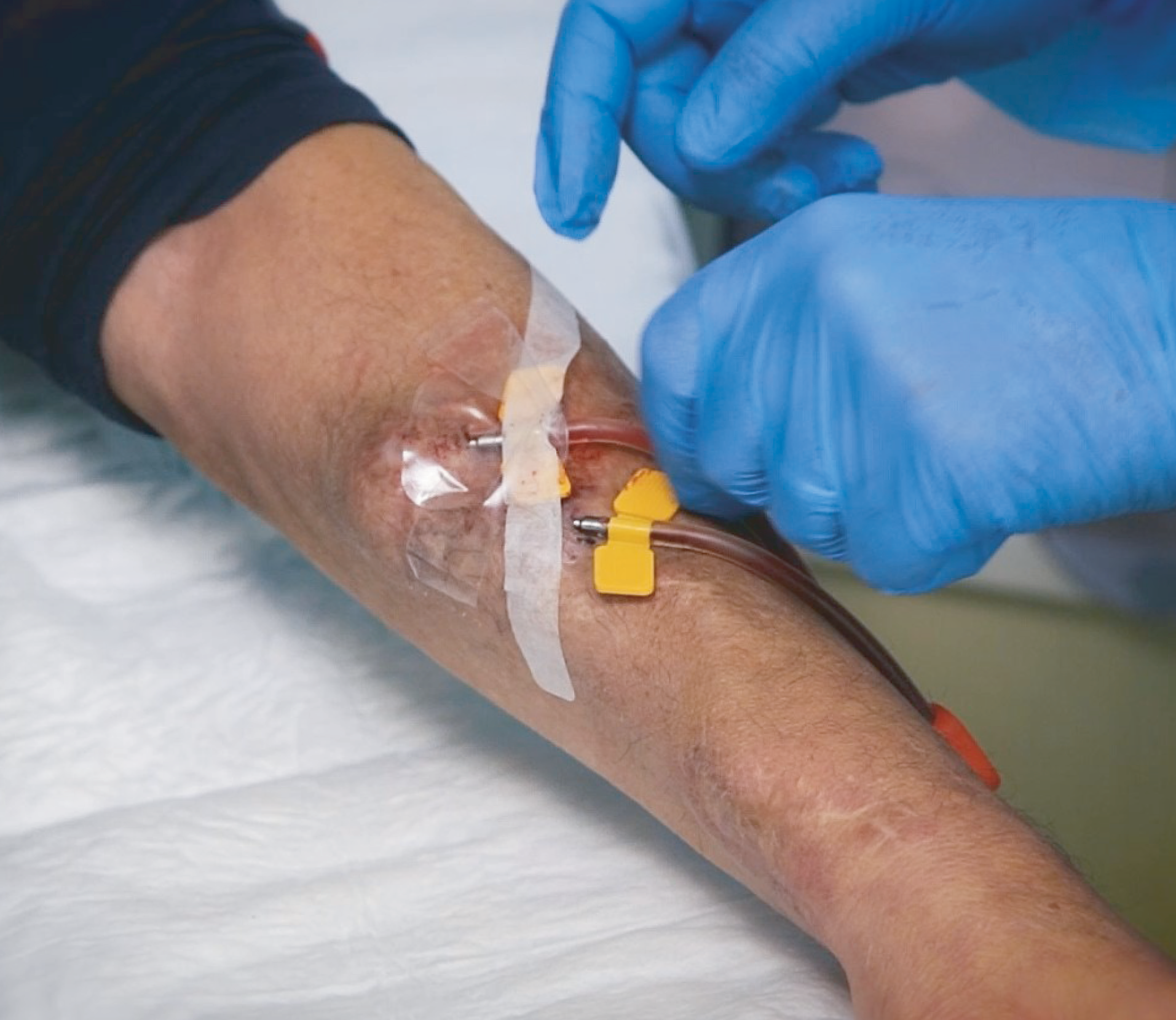 3 – Coloque uma fita adesiva sobre o cateter de fístula.